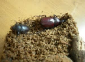 近所の子どもに教えてもらったカブトムシ捕りの極意が成功し、この夏は飼育してみた。さすがとれとれ地元採集のカブトはオスメスとも元気だ