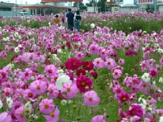 近隣の家庭や企業の共同出資で、コスモス畑を運営しているのかもしれない。