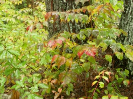 台風到来予報の今朝。やっと色づき始めたヤマウルシが雨に濡れている