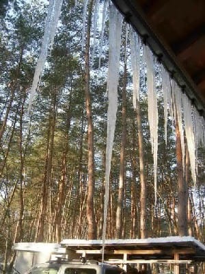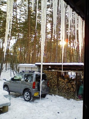 身長を超えるつらら、みごとでしょうね!落ちたときに真下にいないようご注意下さいね。