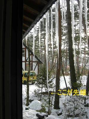 太陽があたるとぽたぽたと雫は落ちるが、気温低下がつらら伸長に拍車をかける