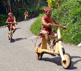yahooニュースに↓この写真。ルソン島で木彫りスクターによる「米の豊作感謝祭」レース