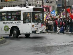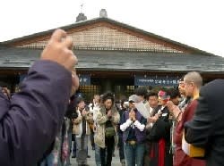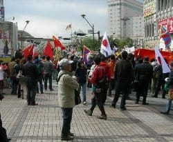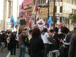 アムネスティや小さな団体が固まって気勢をあげると、寄ってたかって大きな旗を眼前に振り回し、取り囲み阻止しようとする。