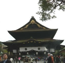 通りを歩くのは危険と感じたので、長野電鉄で善光寺下駅まで行き10分歩き本堂前に