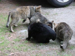 「近くの民家に悪さをするので、餌を与えて防いでいます」という。また「去勢手術もしているから心配ありません」と、聞きもしないことを説明する。