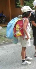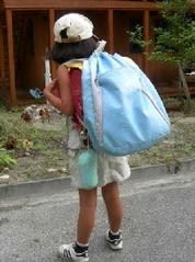 近所のお子ちゃま達も、ランドセルの他に大きなサブバッグ(布袋)に夏休みの工作や絵日記帳をつめて元気に登校した。