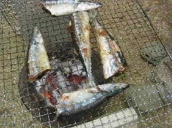 魚を挟んで焼く取っ手つきの魚焼き網があれば、楽に左右に表裏に移動できるので丸ごと1匹焼きが簡単かも。ホームセンターに行ってみよう。