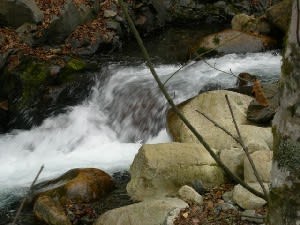 『大水沢の滝』駐車場(5台)看板から徒歩3分。渓谷側に小さな滝が見える