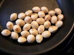 ①厚手のフライパンで5~6分炒る(または専用の炒り器を利用する)