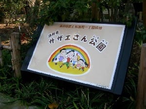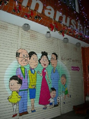 シャッターや通り沿いのちょっとした空間にも、サザエさんのイラストが・・・