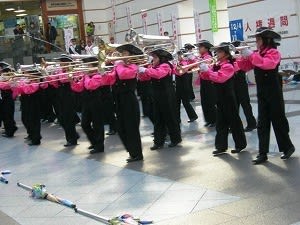 マーチングバンド(Marching band)とは、主に隊列を組んで歩きながら演奏をする楽団のこと。最近では大きな旗をふり楽器演奏とともにパフォーマンスをするカラーガードと競演することが多い。