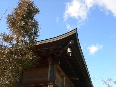 穂高有明にある小さなお堂の軒下で揺れる鐘。