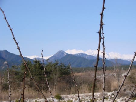 2月の安曇野に雪氷なし、やっぱりちょっと物足りないような、写真は3月か4月のような明るさですね。