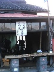 右店の軒下には「打刃物 農具 切味請合 かじや」の紙看板が風にゆれている