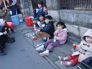 ちょうど稲荷神社の祭礼に露店が並んでいた。この風景は昔も今も変わらない。