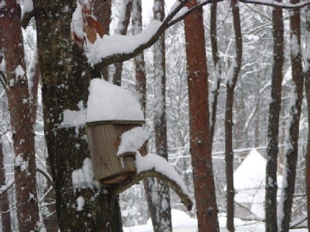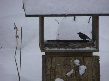 屋根つきの餌台にシジュウガラやヤマガラがやってくる