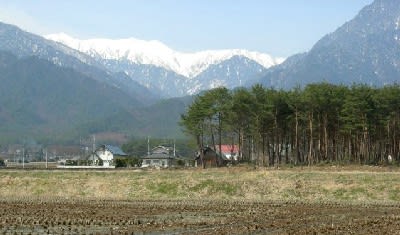 なまった心と体は、残雪の山に見守られながら畑の準備始動です。