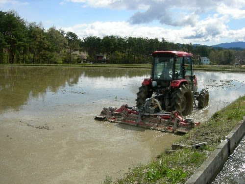 トラクターが代掻きをしていた。日本昔ばなしなら牛だった