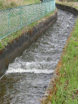 数軒の住宅が集まる近くの水路から、優しい音でドドン・ドドンと聞こえてきた。