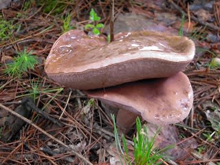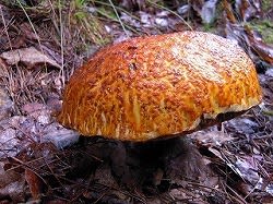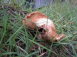 近所のきのこ博士に見てもらったところ、ヤマドリタケモドキで正解でした。かさの丸い若いものの方が美味しいとのことでしたが、夕食にパスタで頂きました。味はすごい!というほどには感じられませんでしたけど。