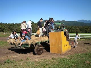 牧草畑をトラクターツアー