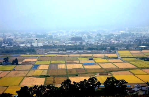穂高の東は池田町。丘から眺める安曇平は秋のパッチワークだ