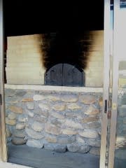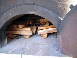 そして石釜内の薪をまず焚き、その熱で鉄板に乗せた成型ぱん種を焼く。
