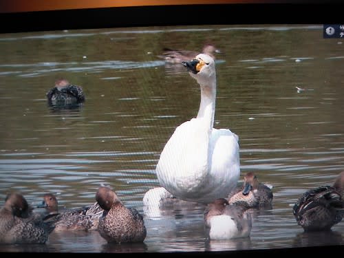17日の朝、テレビニュースでコハクチョウ2羽の初飛来を報じた。