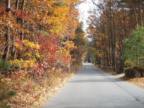 帰り道。森の果樹園を曲がると紅葉真っ盛り