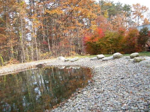 ちょっとバック。鏡池風の池はりんご園経営のつり堀で、夏は親子連れが糸を垂れている。