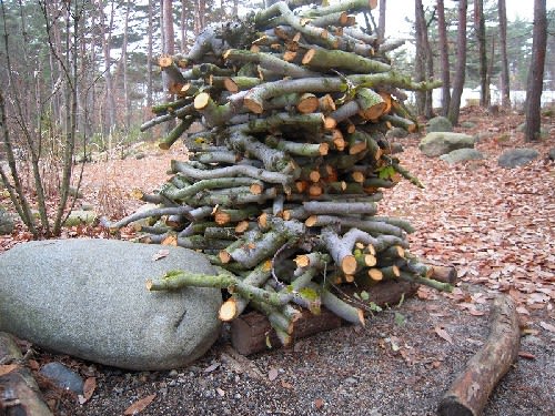 今冬の薪は殆どがニセアカシアですね。リンゴの木は自然乾燥で2010年の12月頃から使えます。
