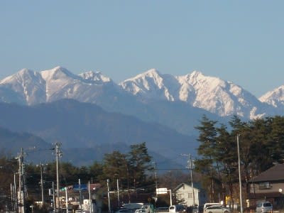「買い物帰りの鹿島槍方面」、何と美しいこと!こんな景色がいつも見えるなんてうらやましいな~。