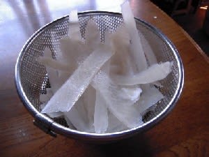 拍子切りの干し大根は青息吐息。厚みがある分、乾燥に時間がかかる