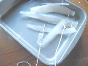 つるし柿の要領で、たこ糸を通す