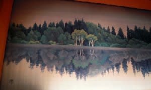 その先には重厚な緞帳ではないようだが、こんな図柄の幕を持つ、ホクト文化ホール