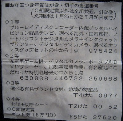 先日、お年玉つき年賀はがきの当選番号の発表があった。