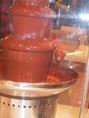 長い串に材料を刺し、たら~りと流れ落ちるチョコレートにかざして、パクッ