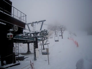 ガスってるけど頂上は青空と聞き、リフトに乗った。