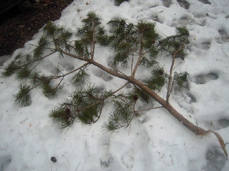降ろしてみたら重いこと、長さ195センチ、枝の太い箇所で直径5センチ