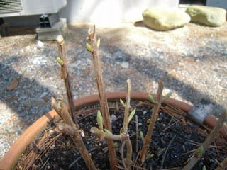 我が家の庭では外気温の急高下により芽が出たり止まったり。