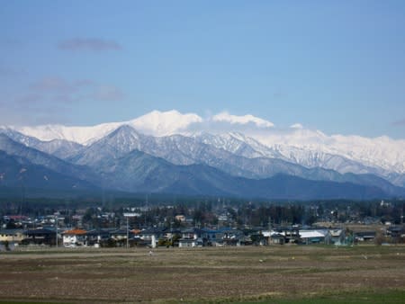 安曇野はまだこんな景色の中(4月上旬撮影)