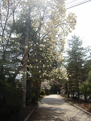 というわけで(どんなわけじゃ)神社にある大きなこぶしは5分咲き。