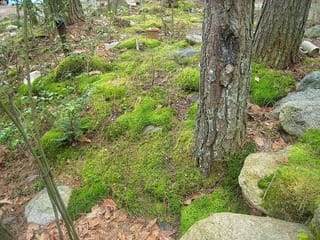 松とミズナラの枯葉がほとんどである。苔の緑が欲しくて、面倒でもせっせと働く。