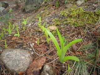 おっ!伸びたショウジョウバカマの横にカタクリが(左端の2本)