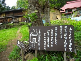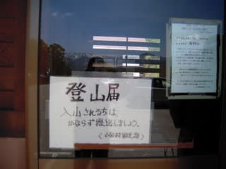 登山届を提出する休憩所。パソコン作成の張り紙でないところが、いかにも
