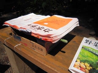 畑で開いた野菜のガイド本の忘れもの。前夜の大雨でずっしり重い。絞れば水が出そう
