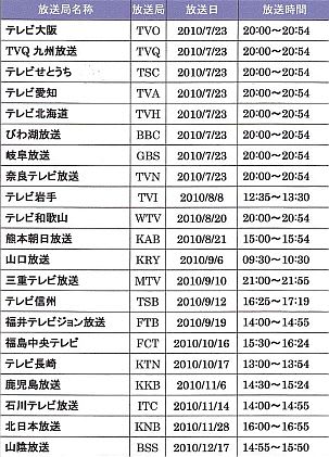 ①テレビ大阪 ②TVQ九州放送 ③テレビせとうち ④テレビ愛知 ⑤テレビ北海道 ⑥琵琶湖放送 ⑦岐阜放送 ⑧奈良テレビ