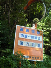下り始めたら左側に鉄塔、右側に看板。完全に見落とし