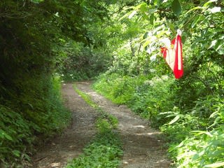 5~6分ほど走ると、ここから山道と教えるいきなり細い道。そして暗い