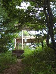 あの古ぼけた展望台は安曇野が一望できる標高1400メートルにある。